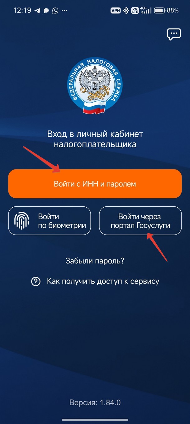 Войдите в личный кабинет используя свой пароль, выданный в ФНС или авторизуйтесь через Госуслуги.
