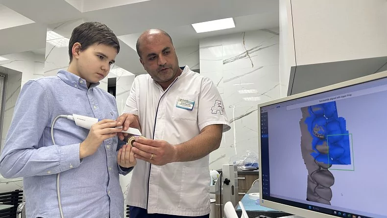 «После появления этого аппарата отпала необходимость снимать слепки зубов пациентов. Сейчас достаточно несколько раз провести датчиком, и результат готов. Этот способ сверхточный и не вызывает дискомфорта у пациентов», - пояснил школьникам Гарик Арамаисович.