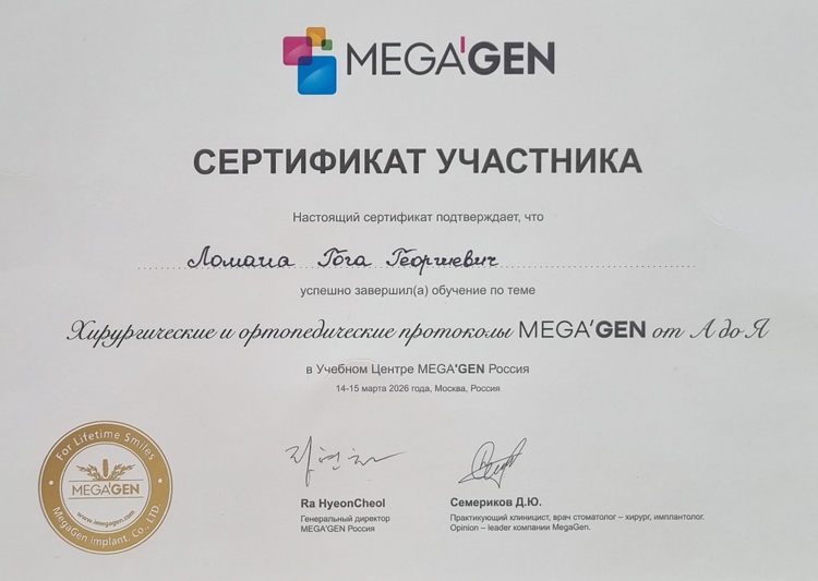 Гога Георгиевич владеет всеми современными технологиями в области имплантологии и стоматологической хирургии, имеет большой и успешный опыт в протезировании с использованием имплантатов различных систем: Astra Tech (Швеция), Straumann (Швейцария), Implantium (Корея).